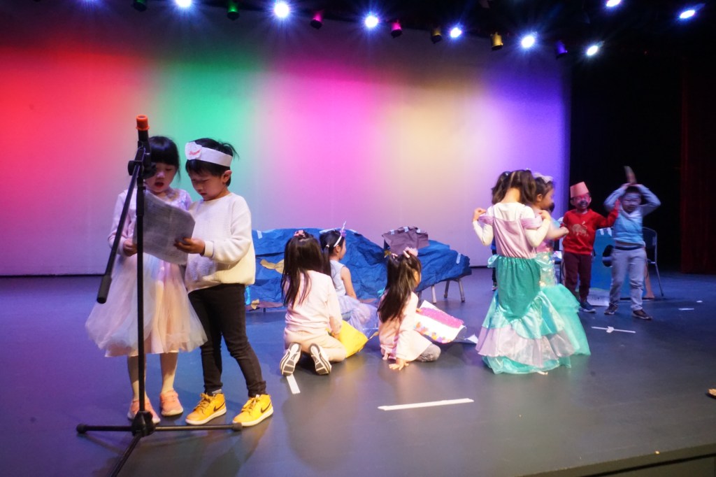 A middle school English class adapted some of our writing to become a play as an assignment for their class. After watching their performance, the kindergartners thought, “We can do that too!” We designed everything ourselves with an original script, set construction and costume-making. In the end, we showcased our play for other grades. The kids were so proud of what they accomplished together.