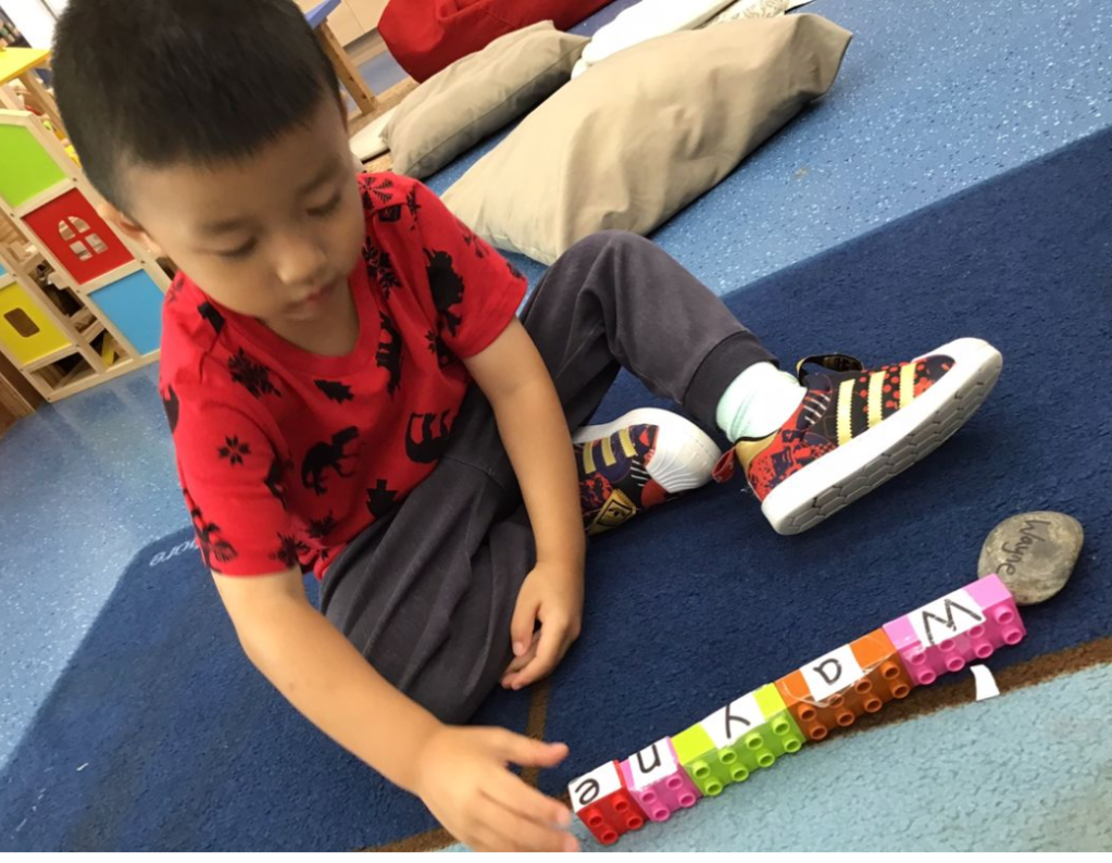 As part of our “All About Me, All About Us” unit, the kids used their own names as an entry point into thinking about letters and sounds. They also thought about how names are important for identity and we built classroom community by sharing our friends’ names.
